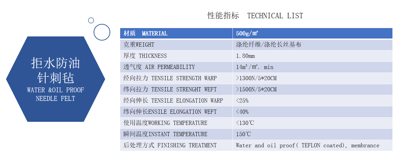 滤布经轧光,浸渍PTFE(f防水剂),烘干,定型处理的过滤毡应用在含湿量较大的场合。与普通滤袋相比,因滤料不易堵塞糊袋,故布袋使用寿命延长且清灰周期可延长,通过的气体流量也加大,故可大量地节省能耗和维护费用,同时也增加了产量 。